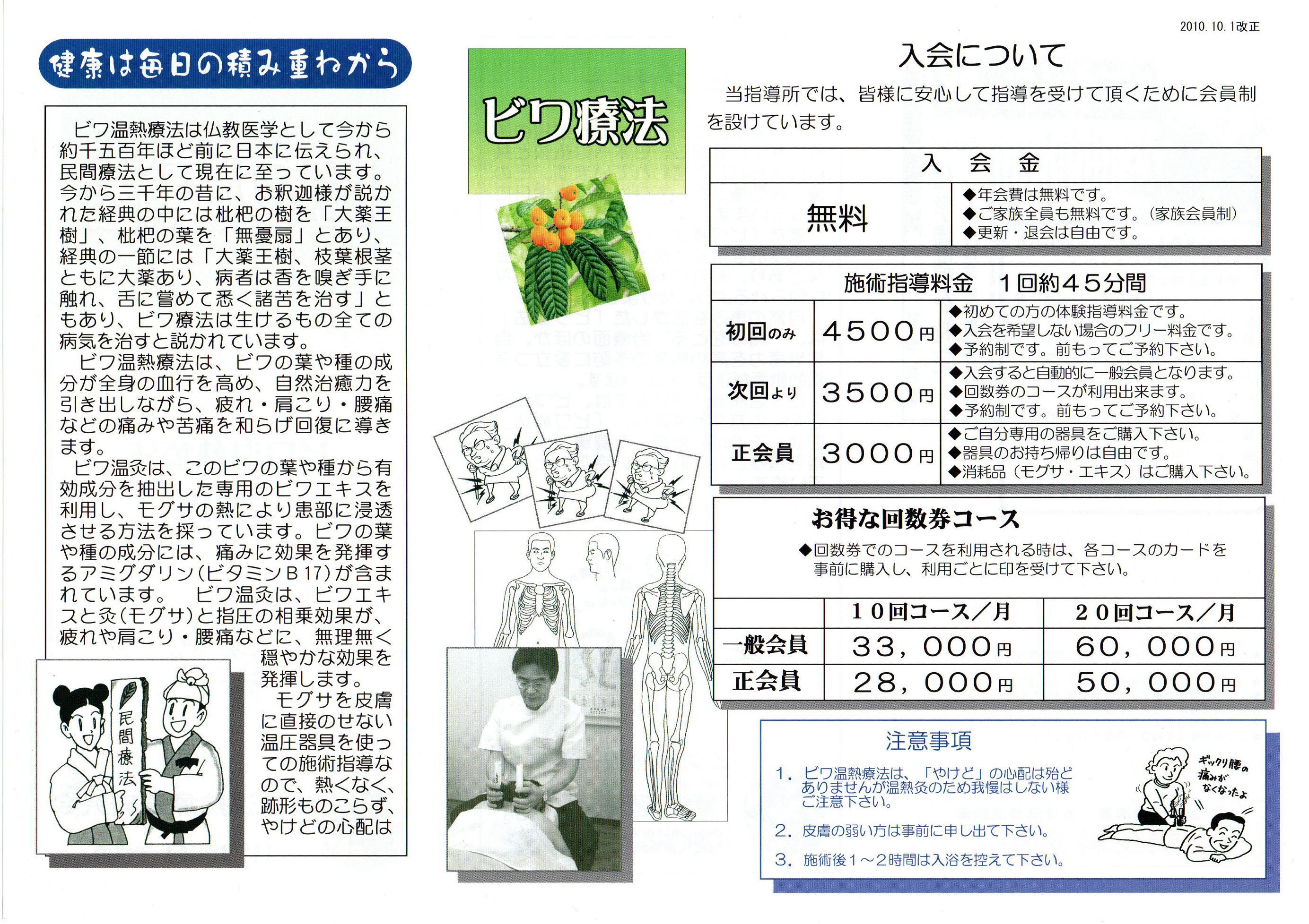 ビワ温灸パンフレットPDFファイル 施術料金など